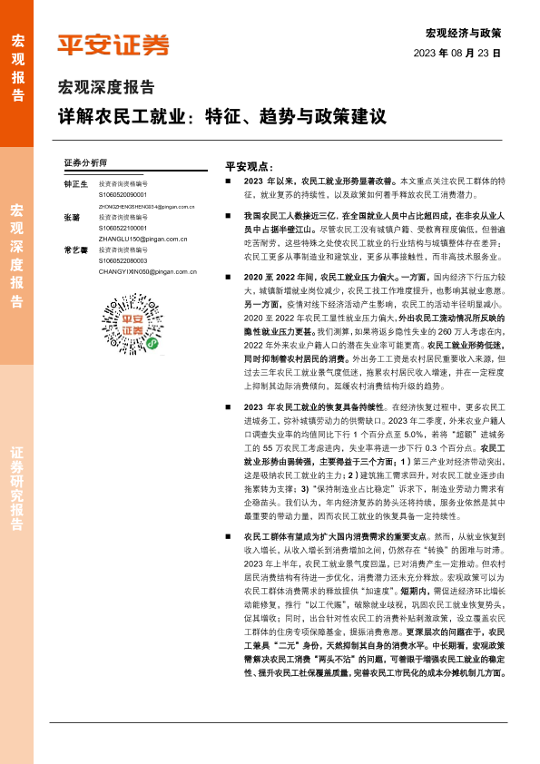 【平安证券】【20230823】详解农民工就业:特征、趋势与政策建议-16页
