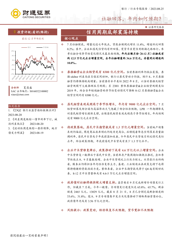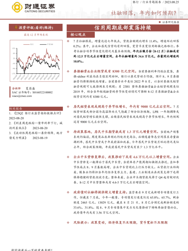 【财通证券】【20230825】银行行业专题报告:信用周期底部震荡持续-社融回落,年内如何预期?-11页