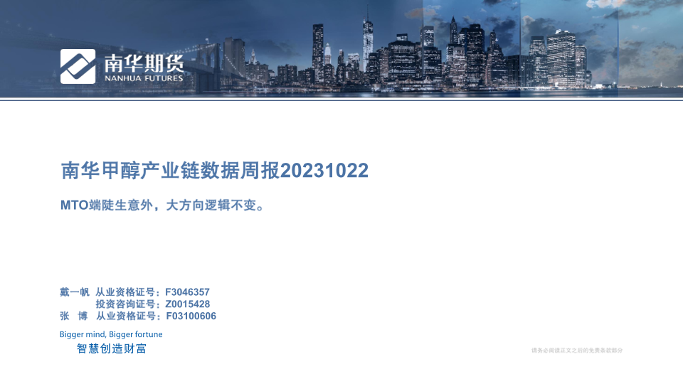 【南华期货】【20231022】南华甲醇产业链数据周报 MTO端陡生意外_大逻辑方向不变-21页