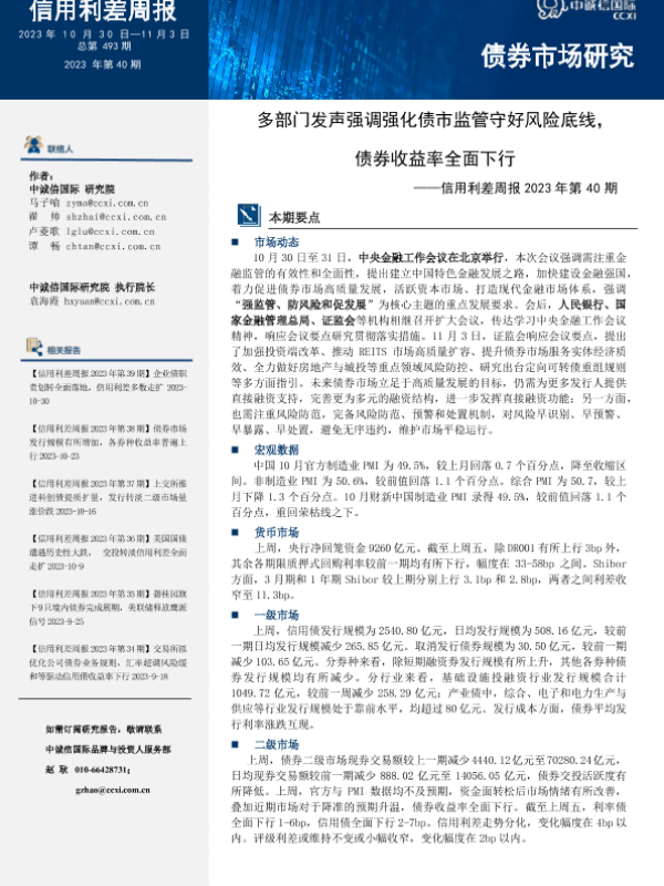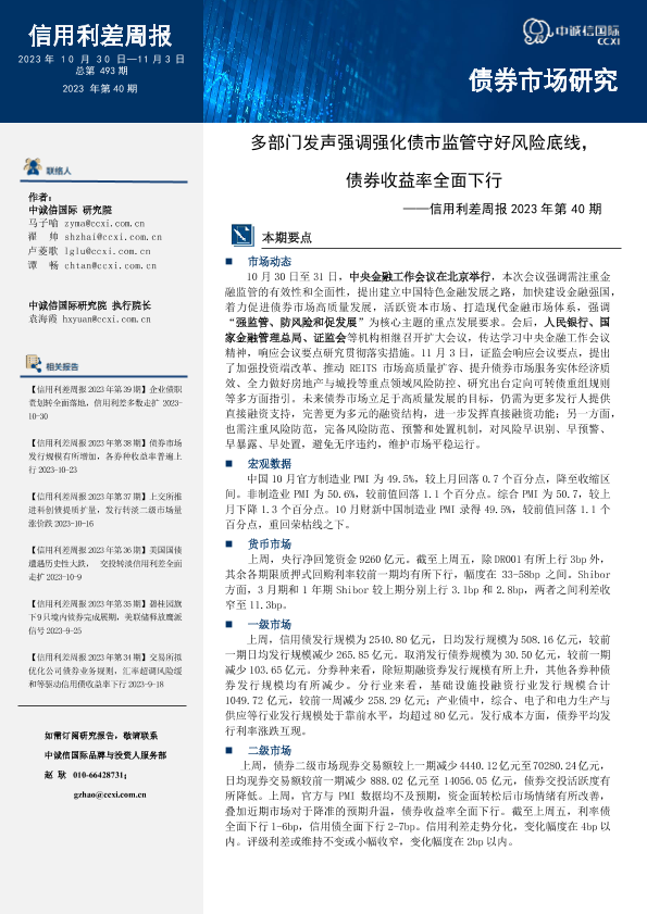 【中诚信国际】【20231108】信用利差周报2023年第40期_多部门发声强调强化债市监管守好风险底线_债券收益率全面下行-16页