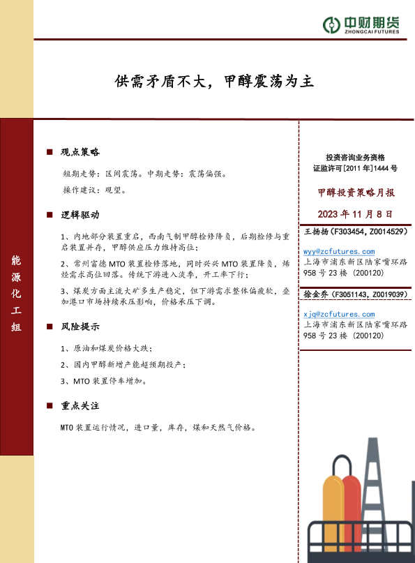 【中财期货】【20231108】20231108-中财期货-甲醇投资策略月报_供需矛盾不大_甲醇震荡为主-7页