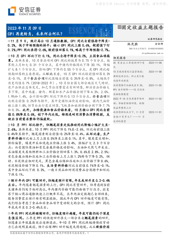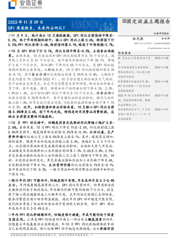 【安信证券】【20231109】CPI再度转负,未来何去何从?-7页