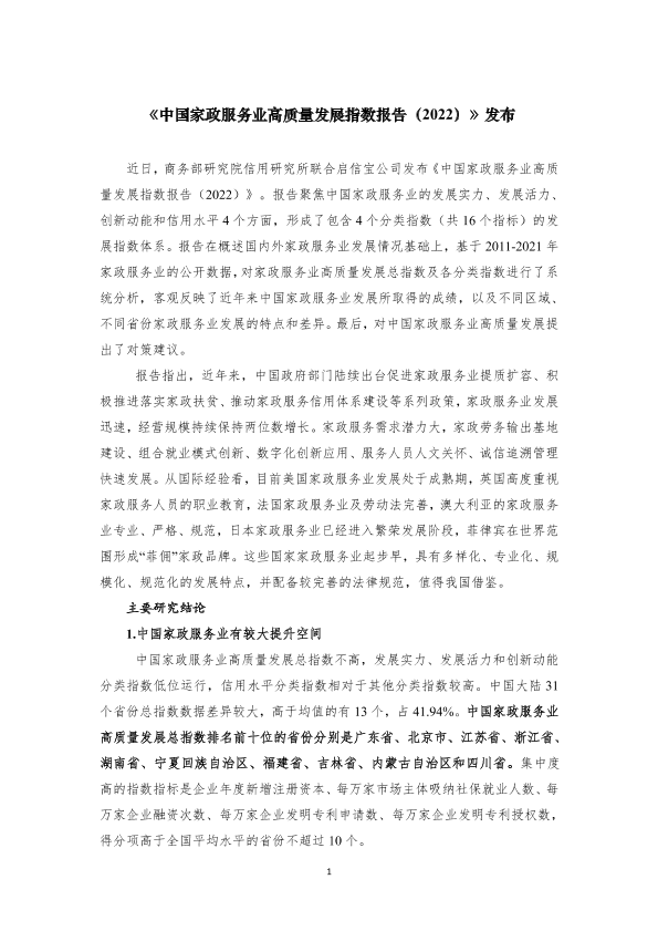 【商务部研究院信用研究所联合启信宝公司】【20220101】中国家政服务业高质量发展指数报告(2022)-8页