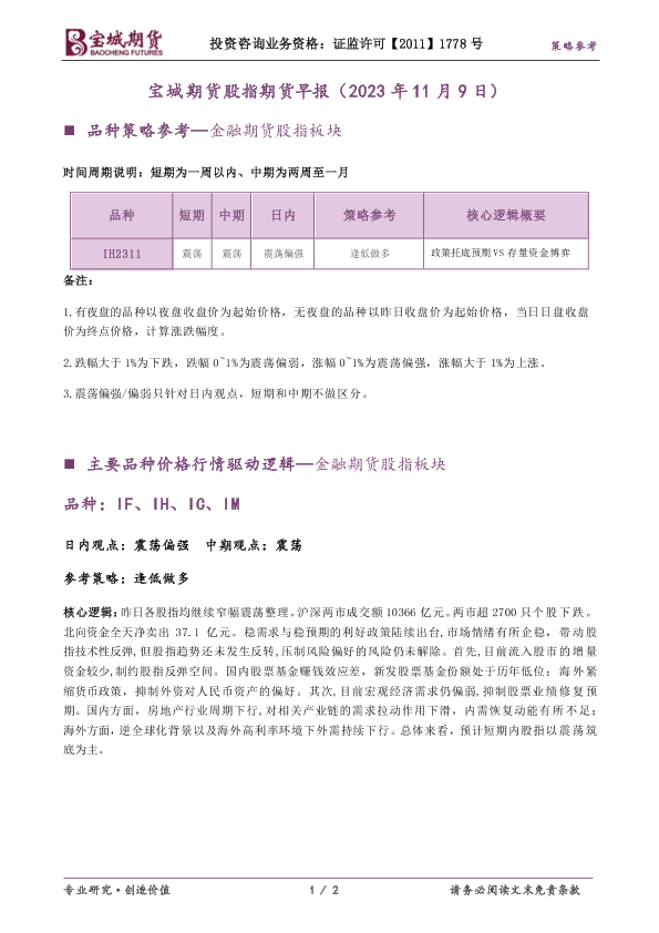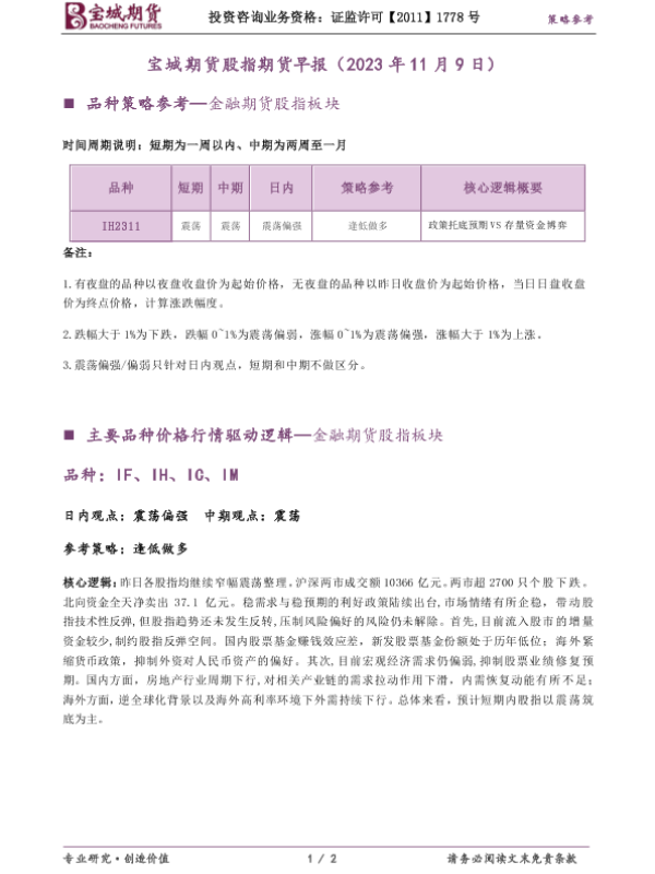 【宝城期货】【20231109】宝城期货股指期货早报(2023年11月9日)-2页
