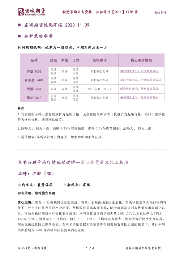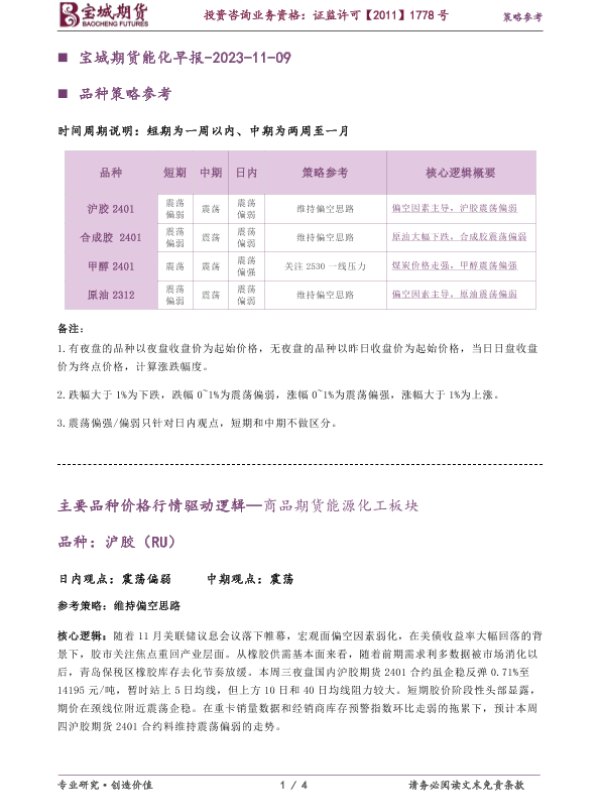 【宝城期货】【20231109】宝城期货能化早报-2023-11-09-4页