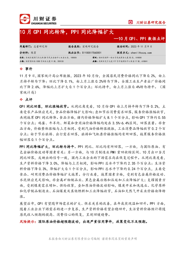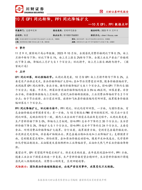 【川财证券】【20231109】10月CPI同比转降_PPI同比降幅扩大-3页