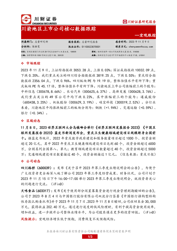 【川财证券】【20231109】川渝地区上市公司核心数据跟踪-3页