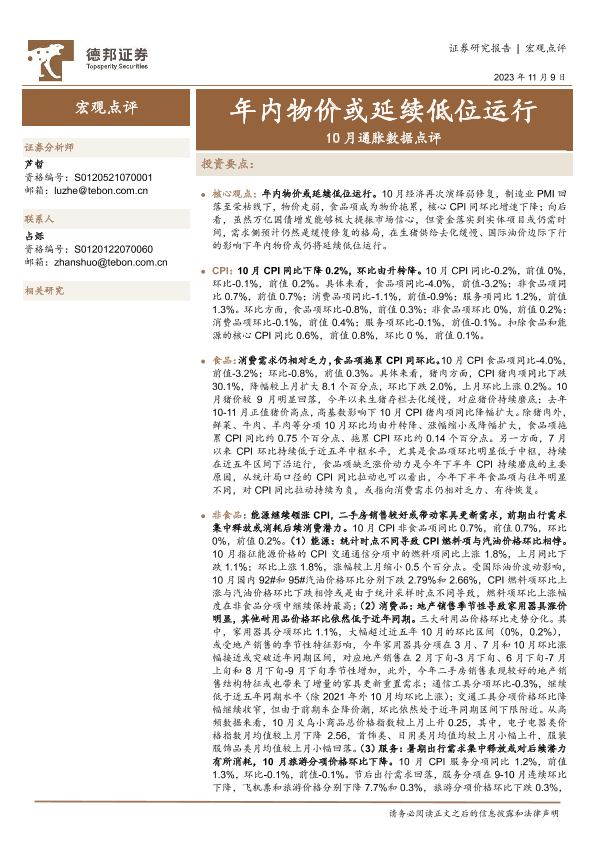 【德邦证券】【20231109】10月通胀数据点评:年内物价或延续低位运行-6页