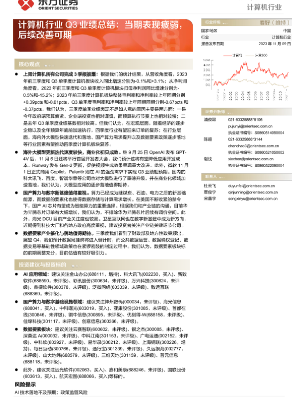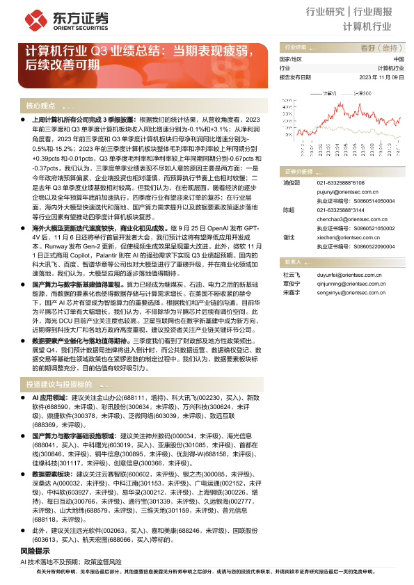 【东方证券】【20231109】计算机行业Q3业绩总结:当期表现疲弱,后续改善可期-12页