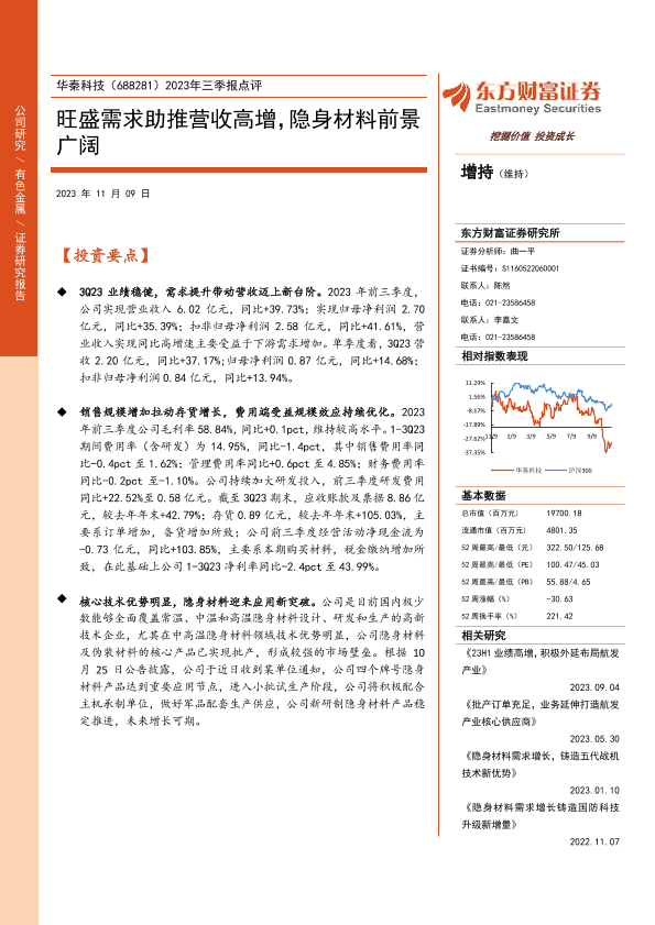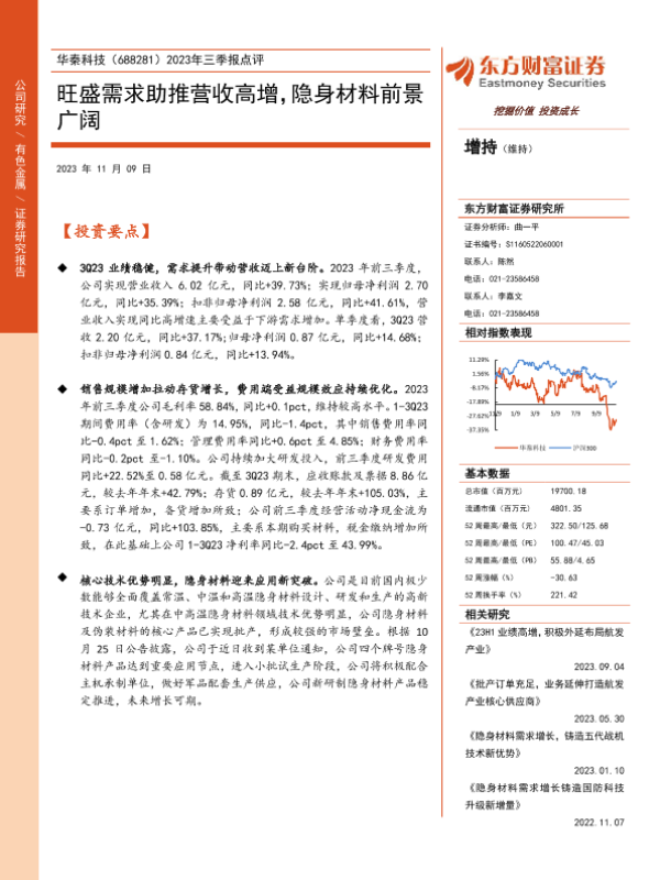 【东方财富证券】【20231109】华秦科技(688281)2023年三季报点评-4页