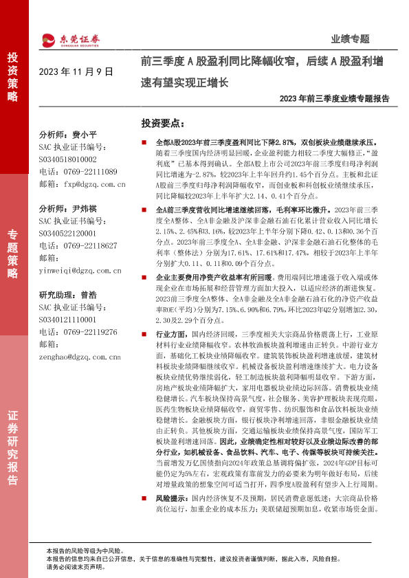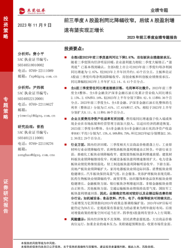 【东莞证券】【20231109】2023年前三季度业绩专题报告-22页