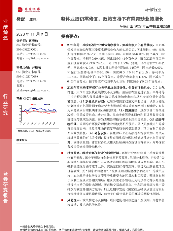 三季报业绩 业绩修复 子板块分析 政策支持 环保行业