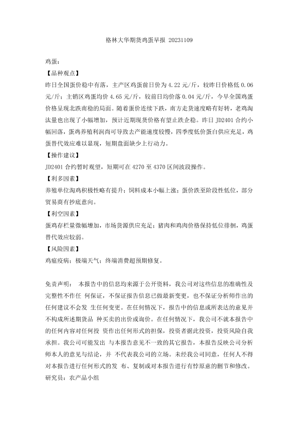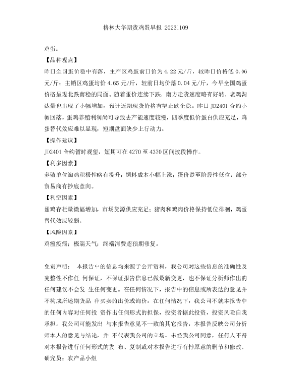 【格林大华期货】【20231109】格林大华期货鸡蛋早报 20231109-2页