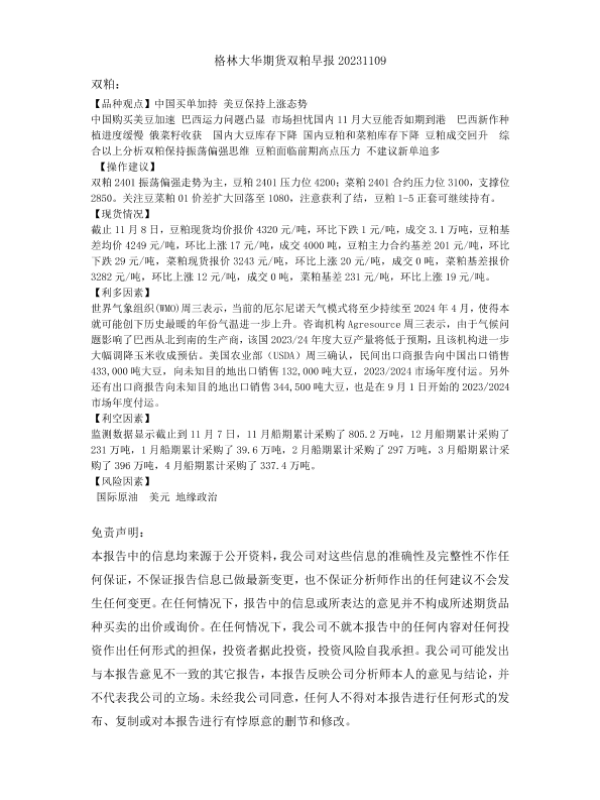 【格林大华期货】【20231109】格林大华期货双粕早报 20231109-2页