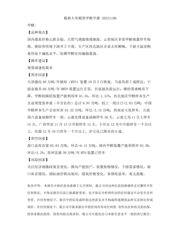 【格林大华期货】【20231109】格林大华期货甲醇早报 20231109-2页