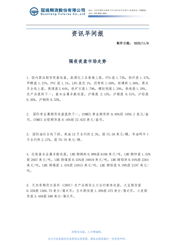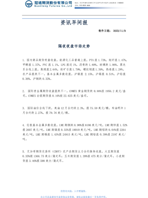 【冠通期货】【20231109】资讯早间报-15页