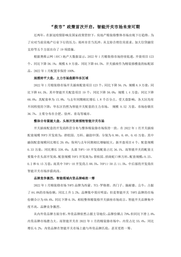 【奥维云网(AVC)】【20220101】奥维-“救市”政策首次开启,智能开关市场未来可期-8页