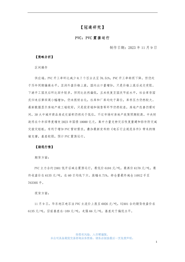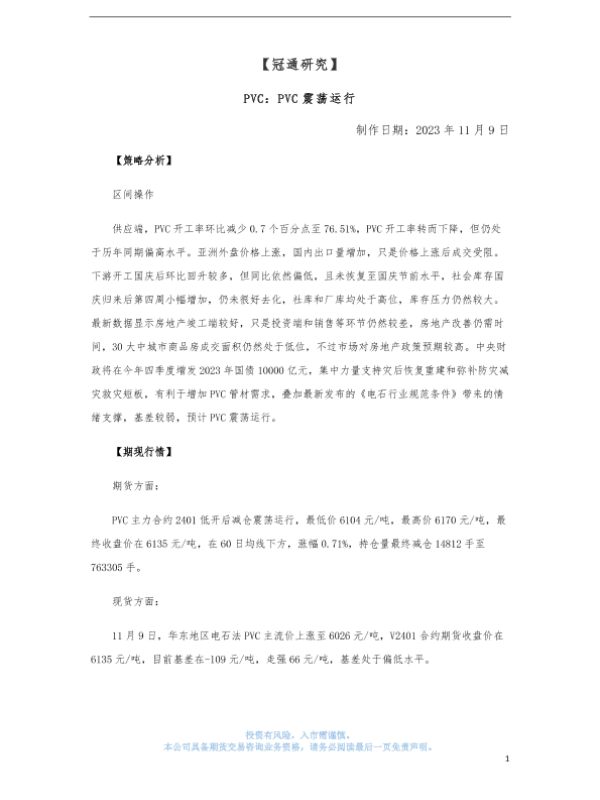 【冠通期货】【20231109】PVC:PVC震荡运行-3页