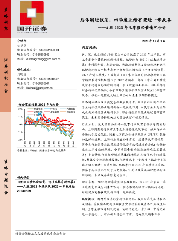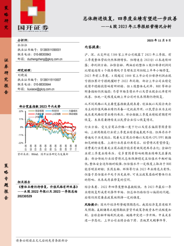 【国开证券】【20231109】总体渐进恢复,四季度业绩有望进一步改善——A股2023年三季报经营情况分析-26页