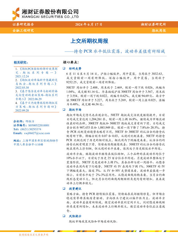 【湘财证券】【20240617】上交所期权:持仓PCR水平低位震荡,波动率差值有所缩减-12页