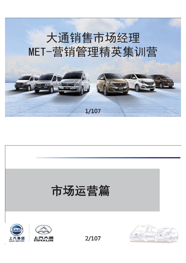 上汽大通 培训材料 市场运营 汽车营销 营销管理