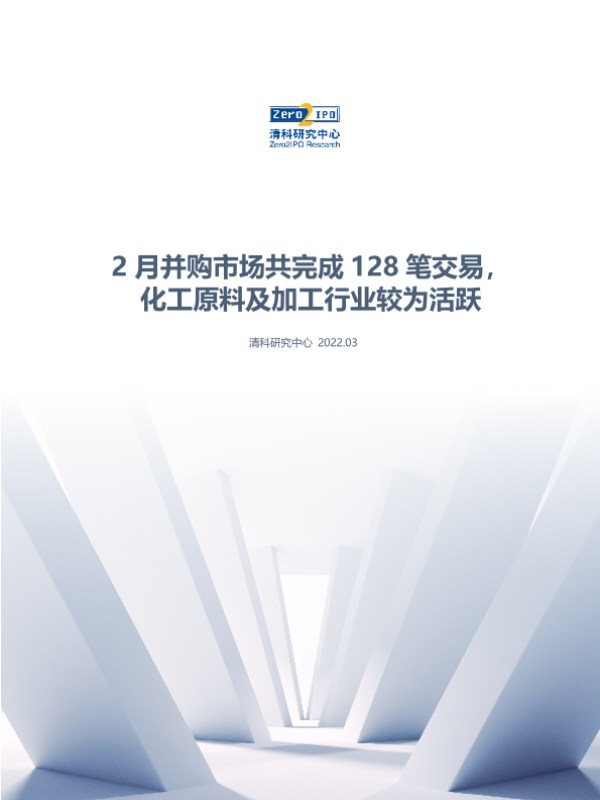 【清科研究中心】【20220310】清科数据:2月并购市场共完成128笔交易,化工原料及加工行业较为活跃-13页