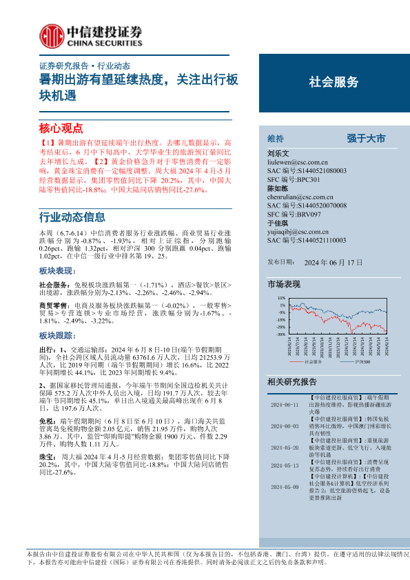 免税市场 出行板块 暑期出游 社会服务 酒店餐饮