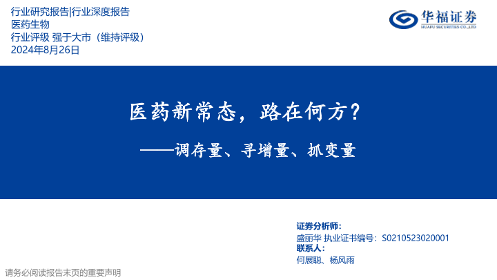 【华福证券】【20240826】医药生物行业深度报告:调存量、寻增量、抓变量-医药新常态,路在何方?-50页