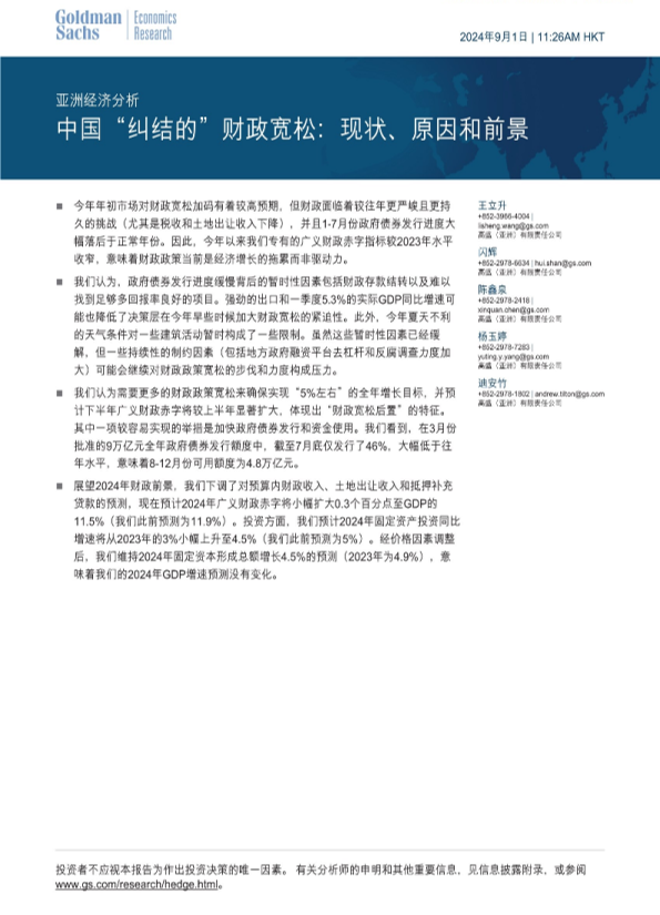 【Goldman Sachs】【2023】亚洲经济分析:中国“纠结的”财政宽松,现状、原因和前景-13页