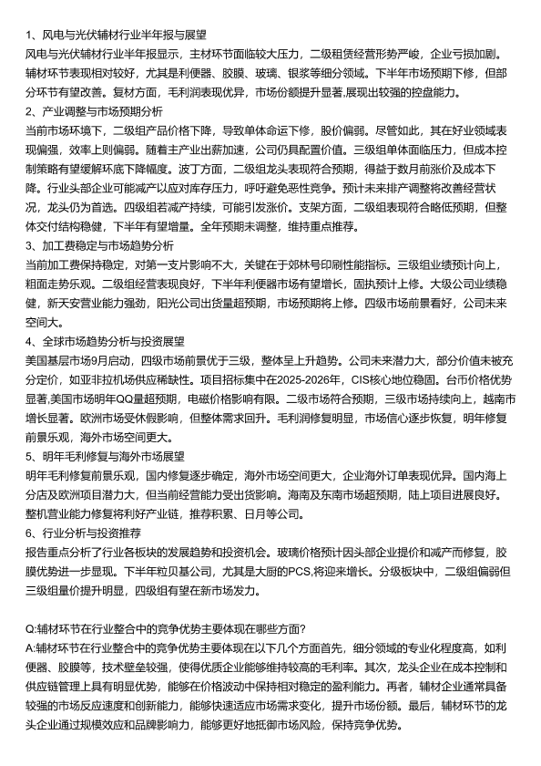 光伏 市场分析 行业展望 辅材 风电