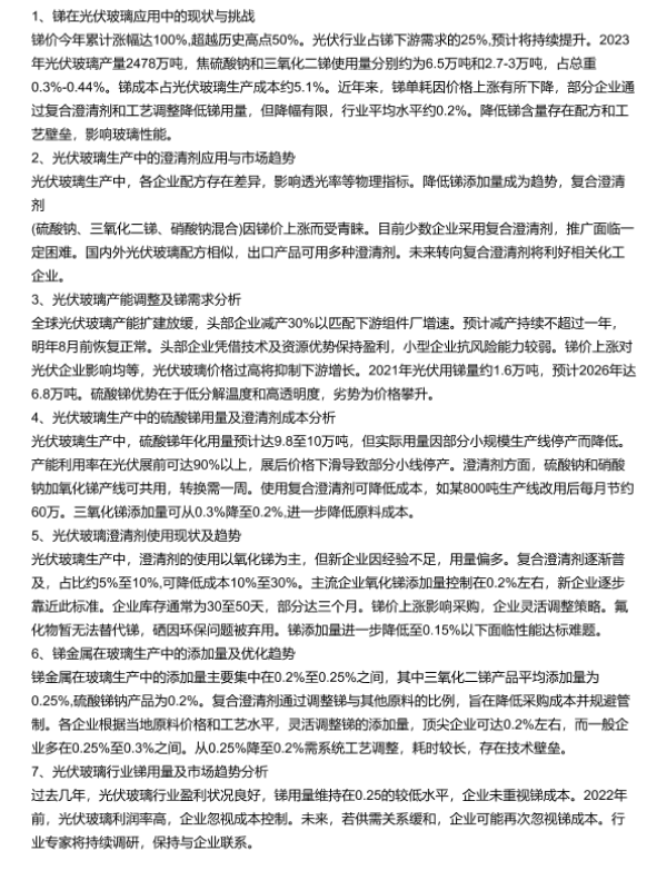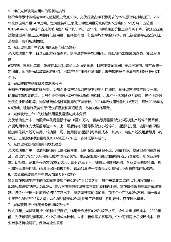 光伏玻璃 成本控制 替代品 澄清剂 锑