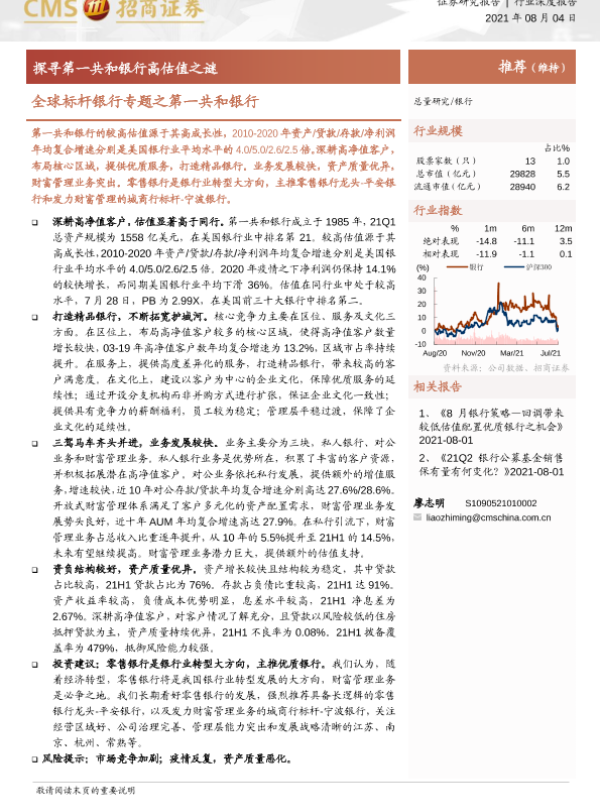【海通证券】【20210804】银行业全球标杆银行专题之第一共和银行:探寻第一共和银行高估值之谜-26页