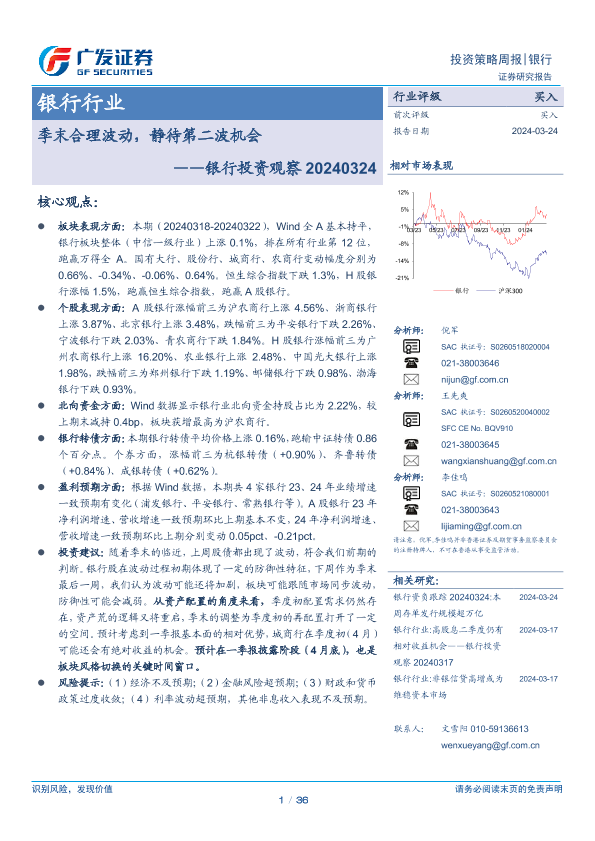 【广发证券】【20240324】银行行业投资观察:季末合理波动,静待第二波机会-36页