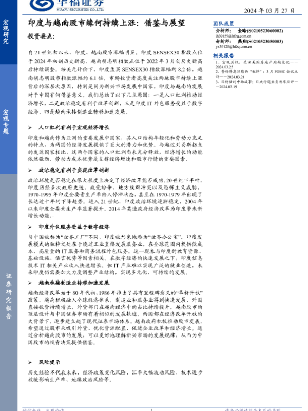 【华福证券】【20240327】印度与越南股市缘何持续上涨:借鉴与展望-16页