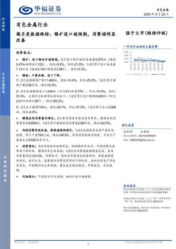 【华福证券】【20240322】有色金属行业锡月度数据跟踪:锡矿进口超预期,消费端明显改善-12页