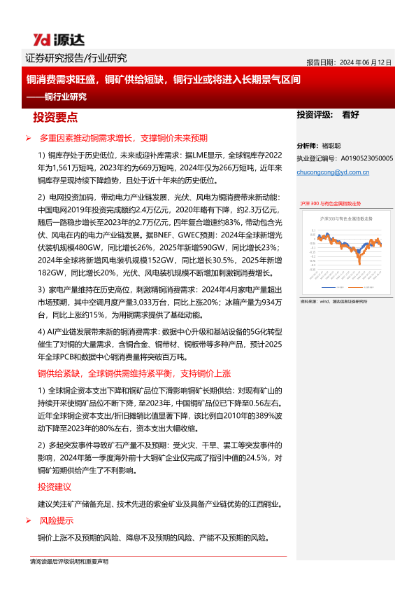有色金属 铜消费需求 铜矿供给 铜行业 长期景气区间