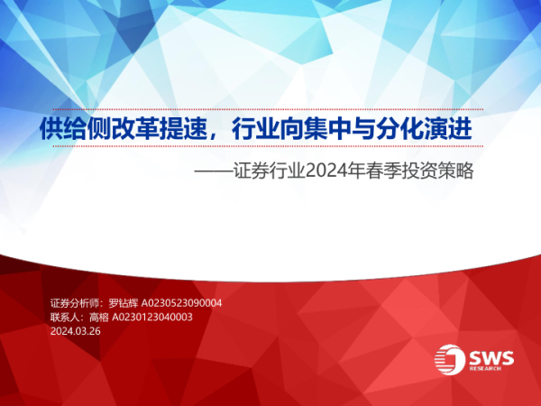 【申万宏源】【20240326】证券行业2024年春季投资策略:供给侧改革提速,行业向集中与分化演进-20页