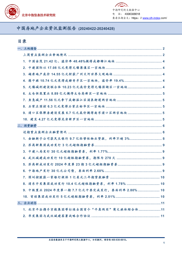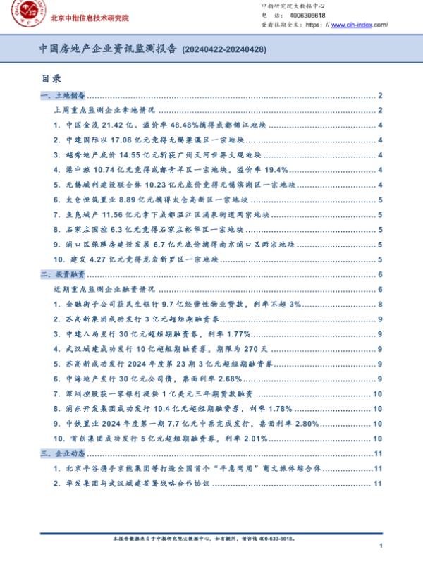【北京中指信息技术研究院】【202404】中国房地产企业资讯监测报告(2024年4月22日-2024年4月28日)-10页