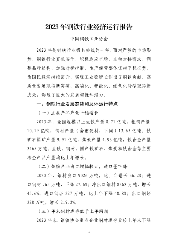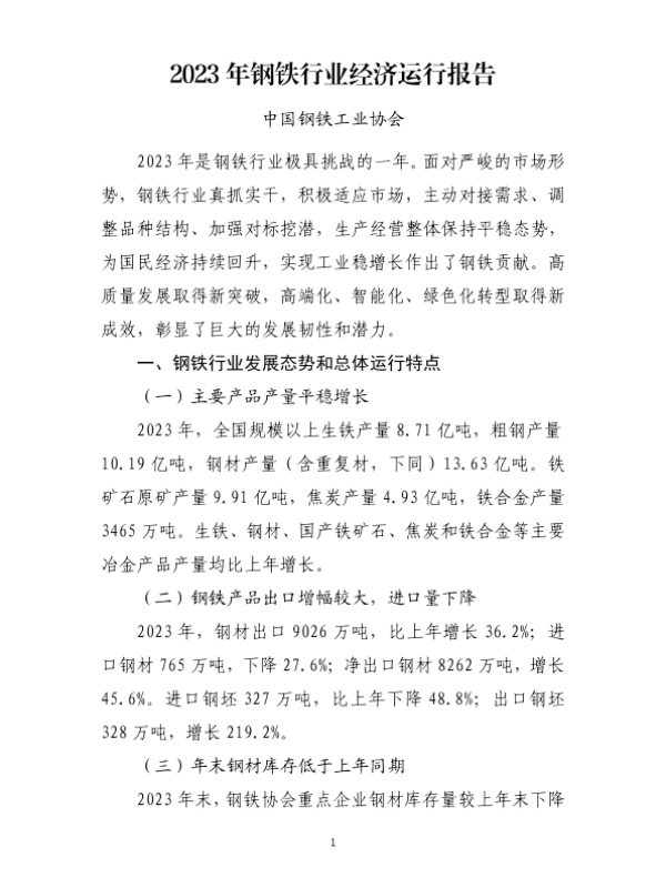 【中国钢铁工业协会】【2023】2023年钢铁行业经济运行报告-7页