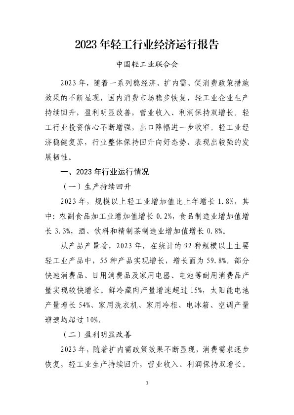 【中国轻工业联合会】【2023】2023年轻工行业经济运行报告-8页