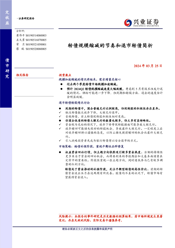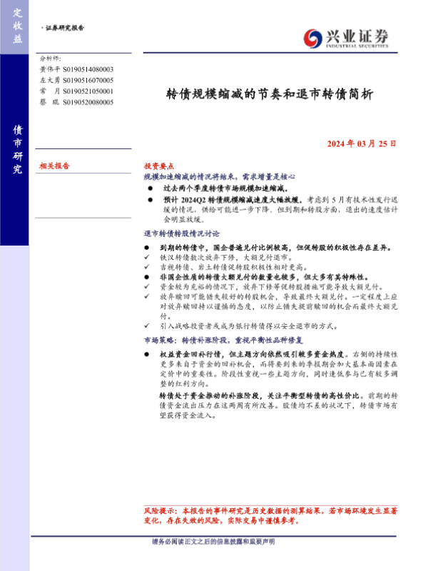 【兴业证券】【20240325】转债规模缩减的节奏和退市转债简析-15页