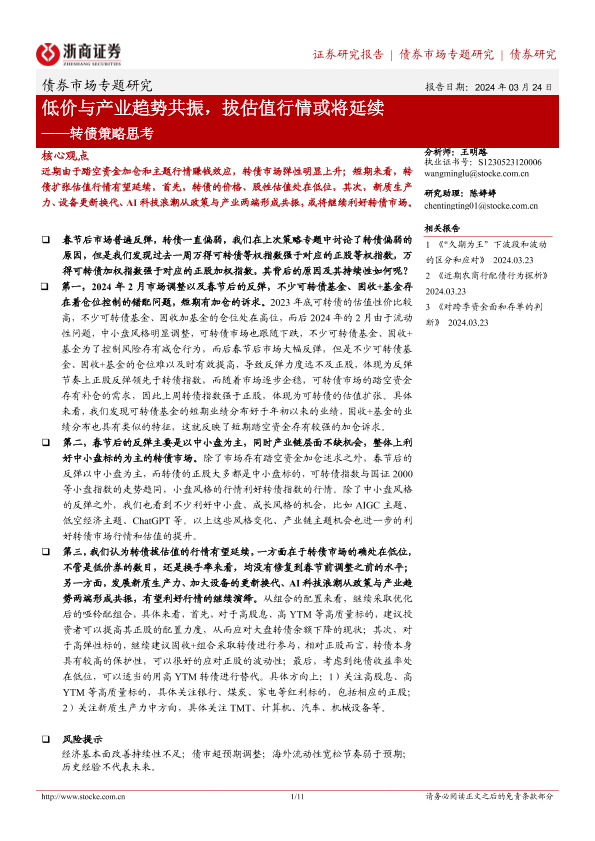 【浙商证券】【20240324】转债策略思考:低价与产业趋势共振,拔估值行情或将延续-9页