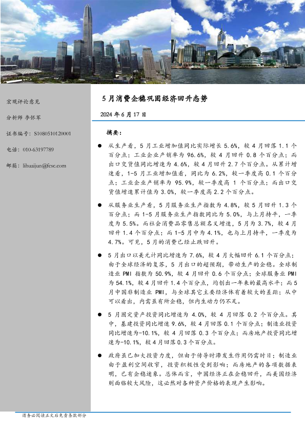 【第一创业】【20240617】5月消费企稳巩固经济回升态势-8页