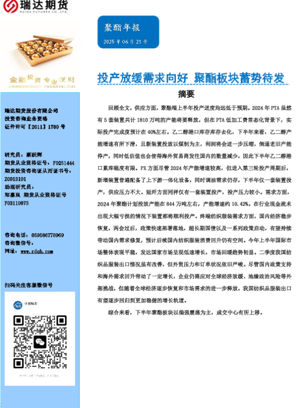 【瑞达期货】【20240621】20240621-瑞达期货-聚酯年报_投产放缓需求向好_聚酯板块蓄势待发-19页