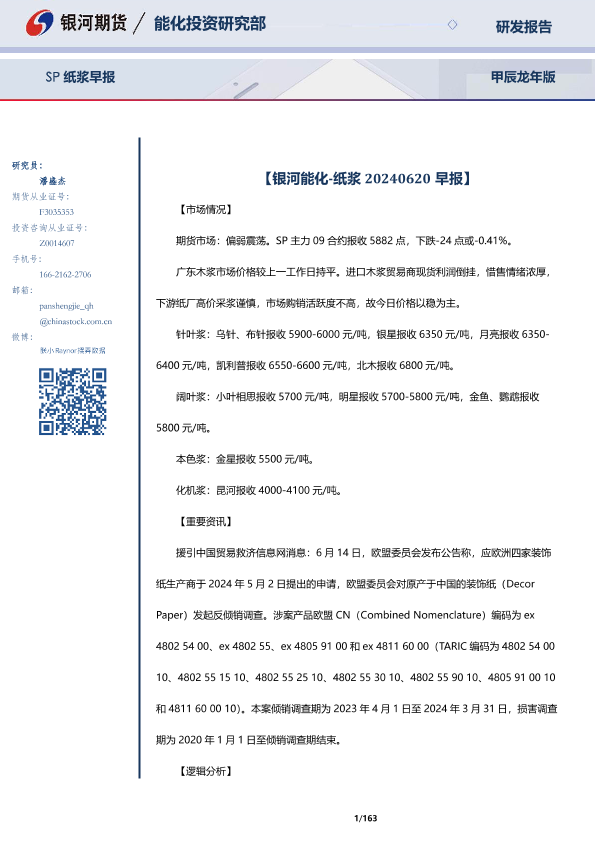 【银河期货】【20240620】20240620-银河期货-SP纸浆早报-163页