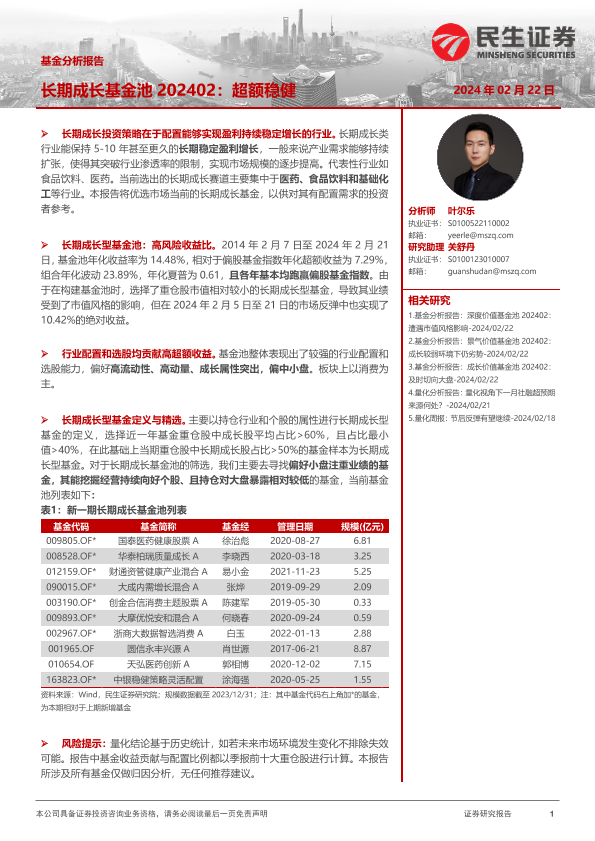 【民生证券】【20240222】基金分析报告:长期成长基金池202402:超额稳健-19页
