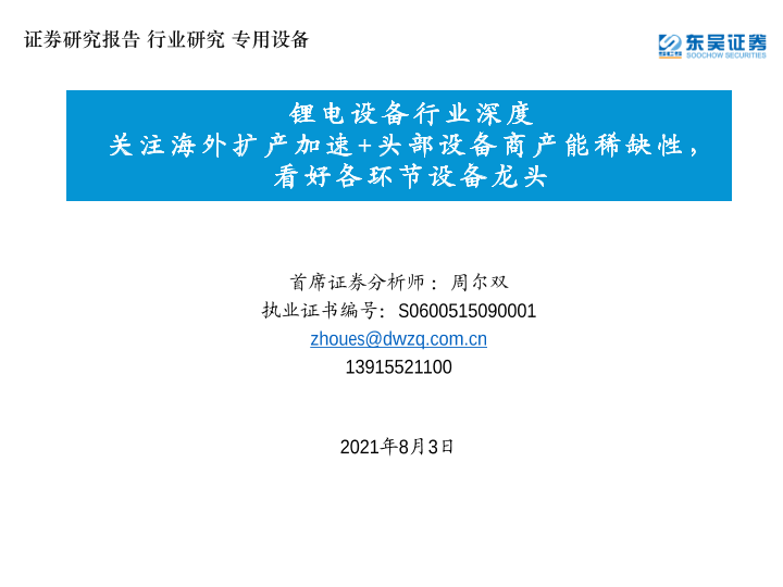 【东吴证券】【20210803】锂电设备行业深度:关注海外扩产加速+头部设备商产能稀缺性,看好各环节设备龙头-85页