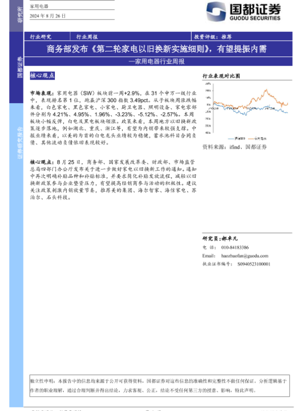 【国都证券】【20240826】家用电器行业周报_商务部发布_第二轮家电以旧换新实施细则_有望提振内需-5页