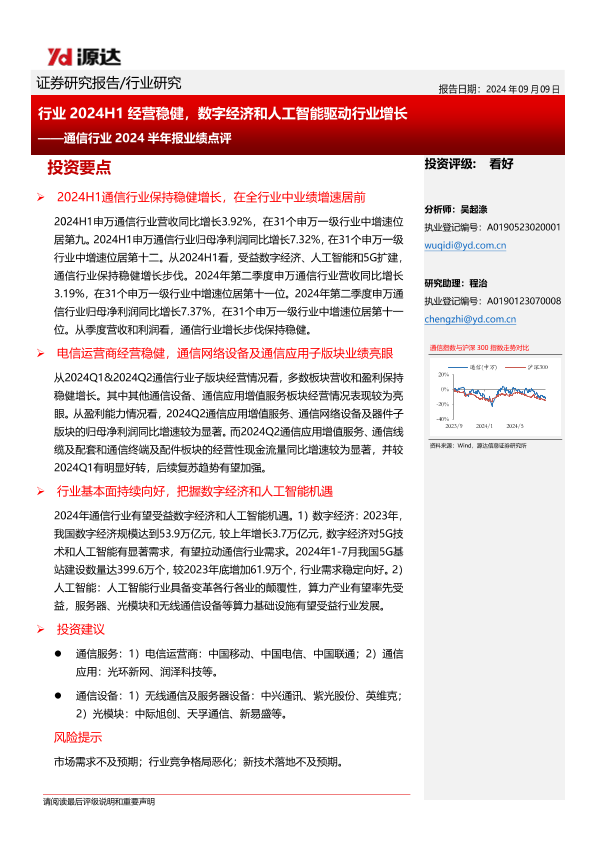 【源达信息】【20240909】通信行业2024半年报业绩点评_行业2024H1经营稳健_数字经济和人工智能驱动行业增长-10页