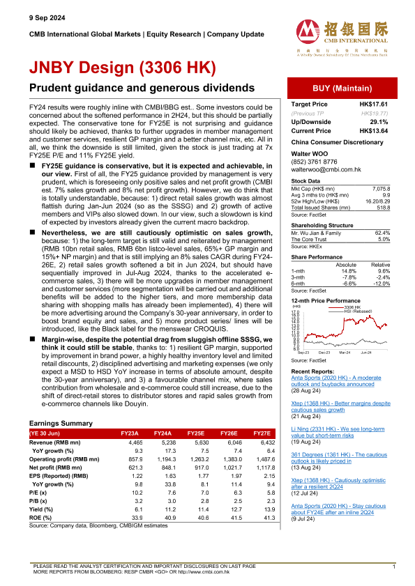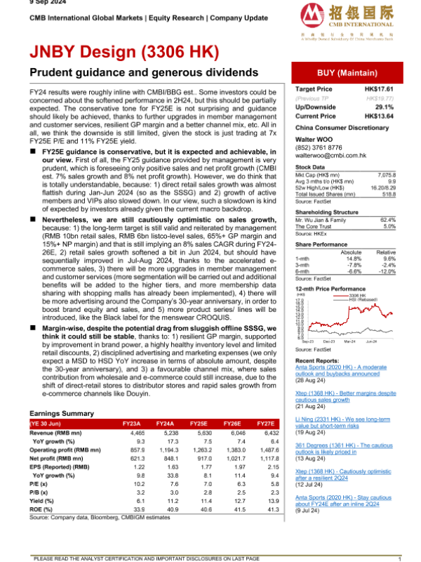 【招银国际】【20240909】江南布衣 - 谨慎的指引和慷慨的股息-10页